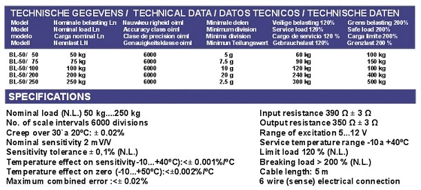 荷蘭BWT PLR-50稱重傳感器,PLR-50稱重傳感器