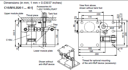 德國(guó)HBM C16/M稱(chēng)重模塊產(chǎn)品尺寸圖: