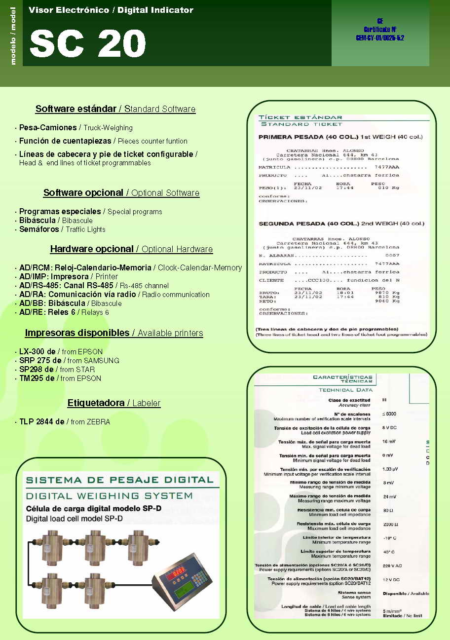 SC-20稱重顯示儀表,西班牙Sensocar SC-20稱重顯示儀表