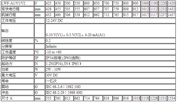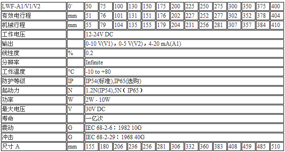 德國(guó)VOLFA直線位移傳感器LWF系列所有量程如下: